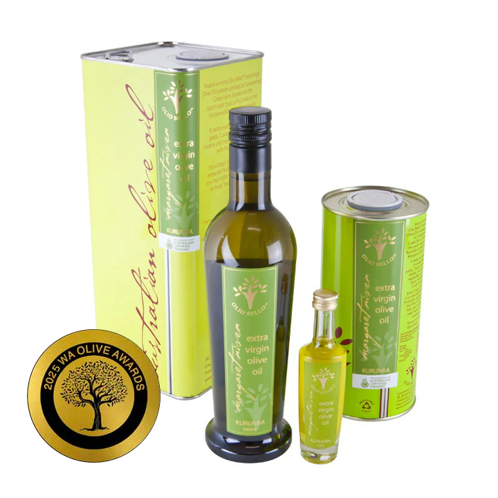 Historically, ‘Kurunba’ received a Gold Medal in 2019 at the premium West Australian Awards for its excellence and refreshing fruity green banana and guava aroma. A combination of Corregiolo and Boutellian (with a hint of Marioli). It then received a Silver Medal in 2020 and in 2021, Kurunba (Bouteillan), was awarded another Silver Medal. In 2022, Kurunba won a Bronze Medal and featured the French varietal Bouteillan (with Frantoio and Corregiola).